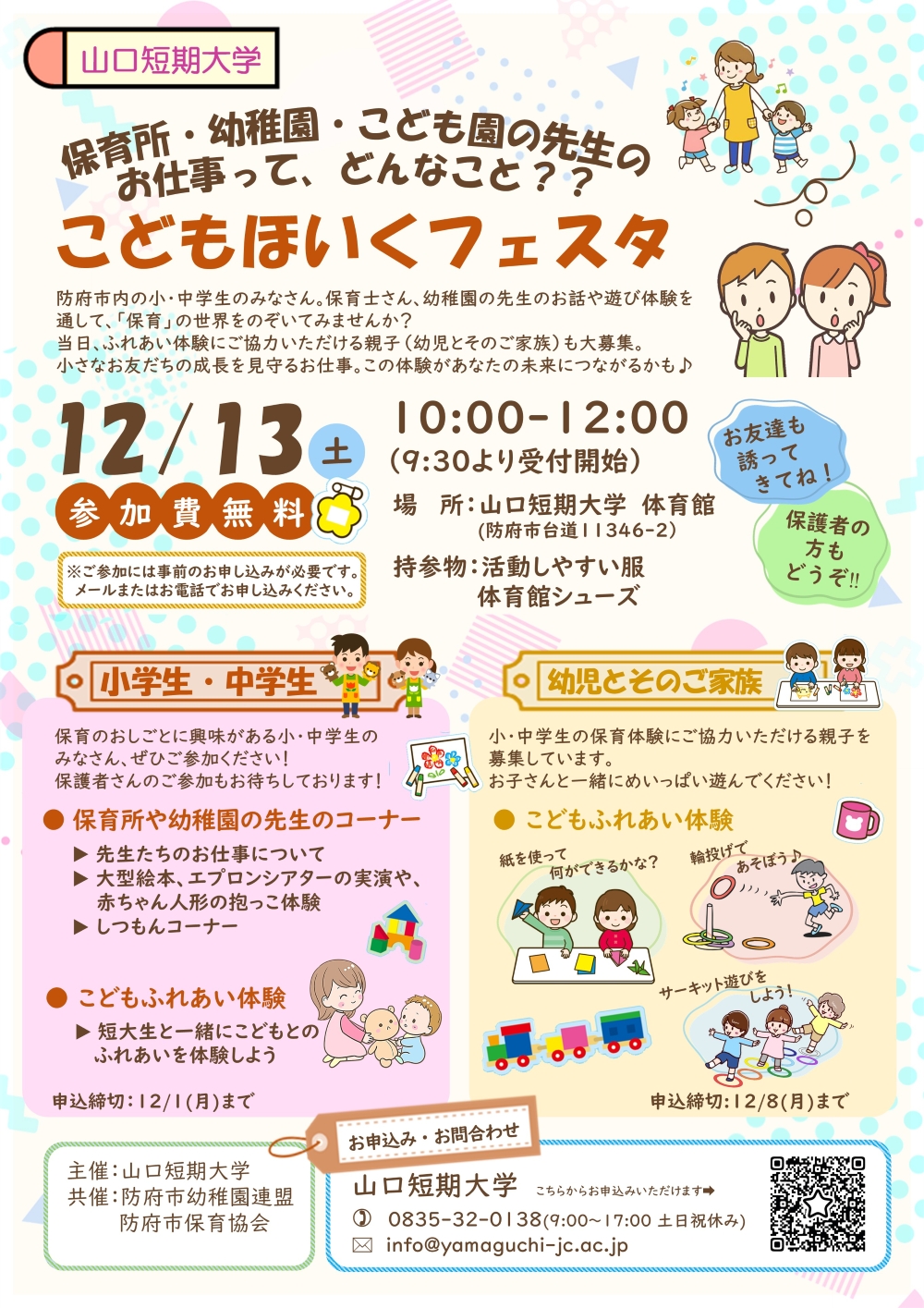 山口短期大学 > お知らせ > 【参加者募集】こどもほいくフェスタ開催!